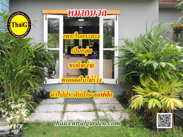 หมากนวล หมากคอนวล ประดับบ้านเรือน สีเขียวสด ทนแล้ง