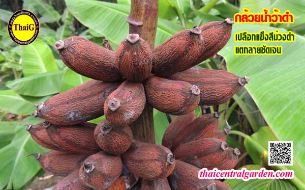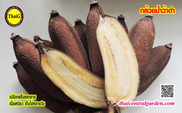 ลักษณะเด่นของกล้วยน้ำว้าดำ ที่แตกต่างจากกล้วยน้ำว้าทั่วไปคือ ลูกจะเล็กและเปลือกแข็งสีเปลือกจะออกสีส้มดำ ม่วงดำตามในภาพ รสหวานอร่อยเหมือนกล้วยน้ำว้าทั่วไป